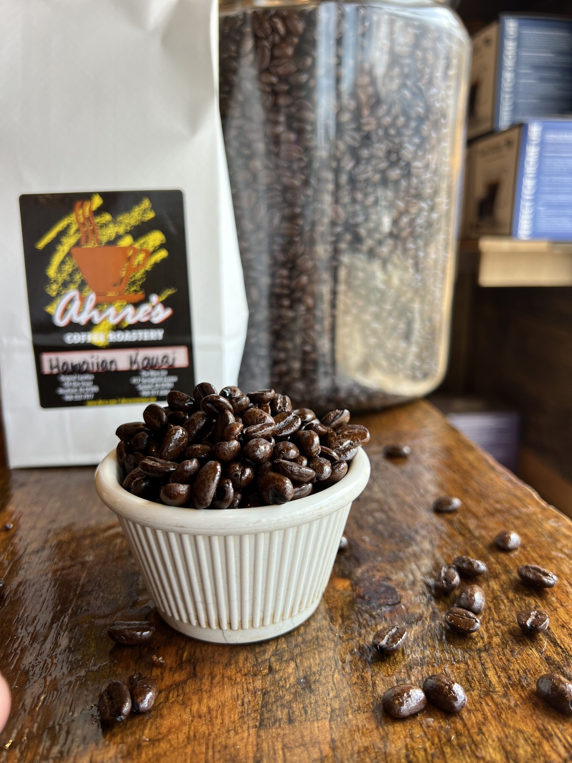 Hawaiian Kauai coffee is grown along the slopes of a volcano, in lava-ash soil,on the island of Kauai. “Extra Fancy” denotes the highest grade. It is an outstanding coffee consisting only of large, perfect beans.